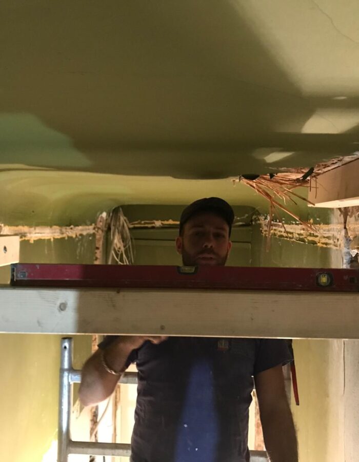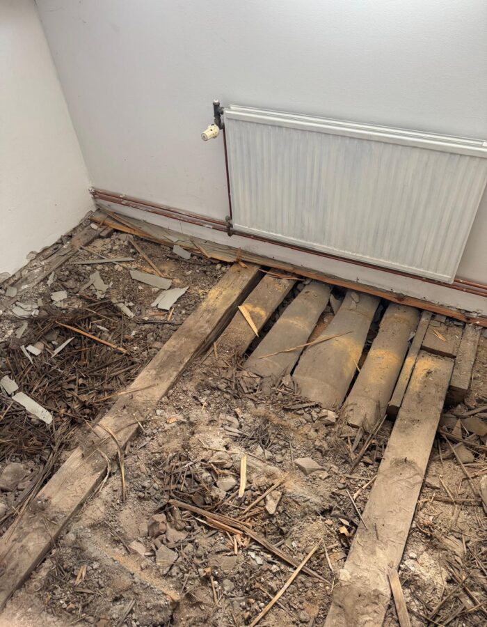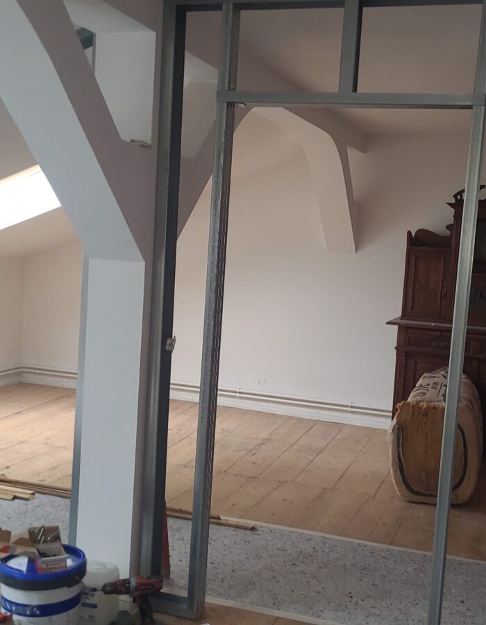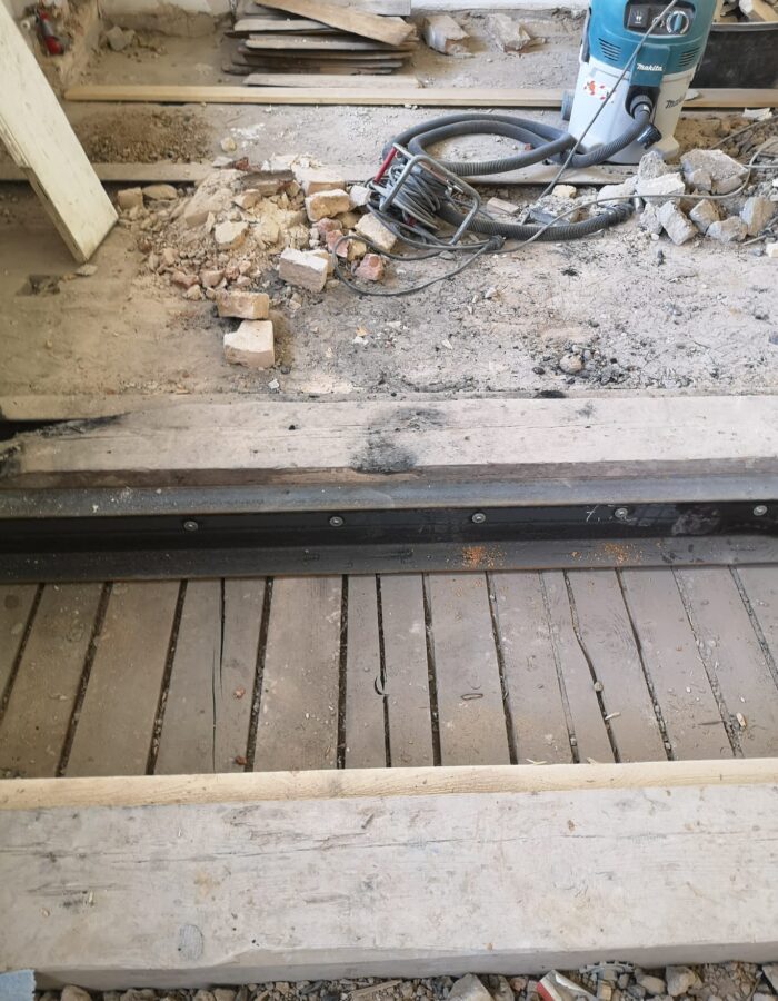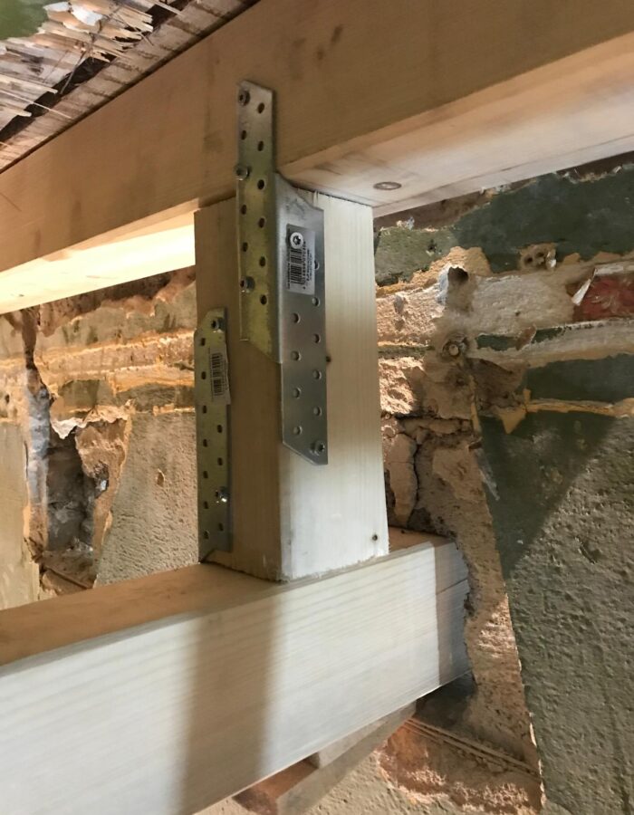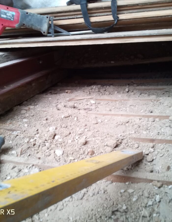 Abriss bestehender Innenwände und Errichtung einer Holzbalkenunterkonstruktion zur Erhaltung von Stuckleisten