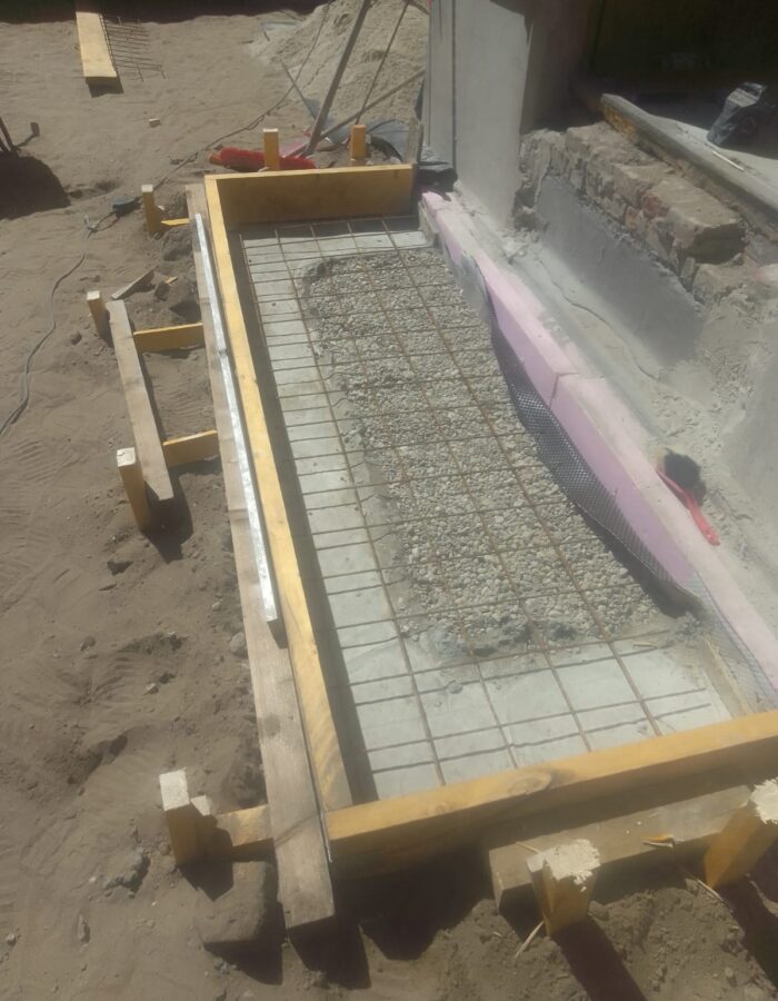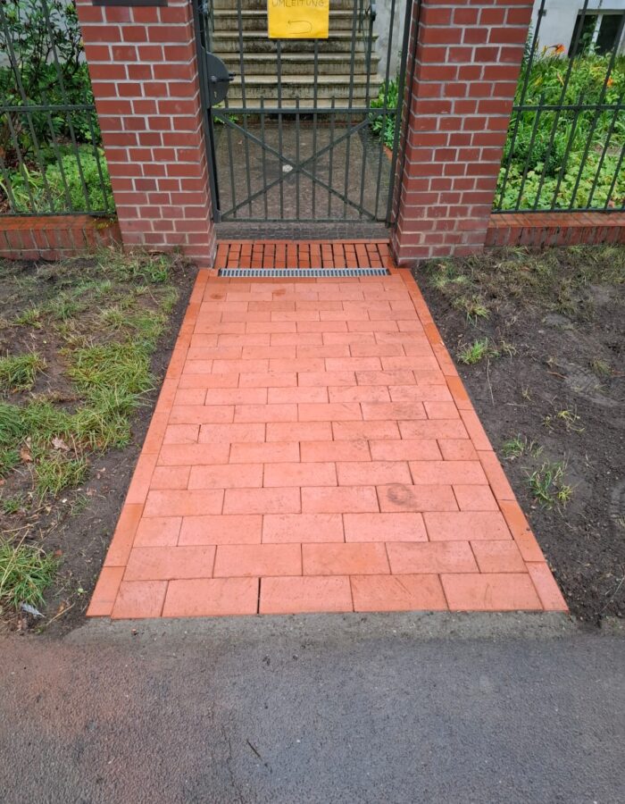 Beschreibung: Gehwegplattenverlegung, sowie Maurer- und Verputzarbeiten