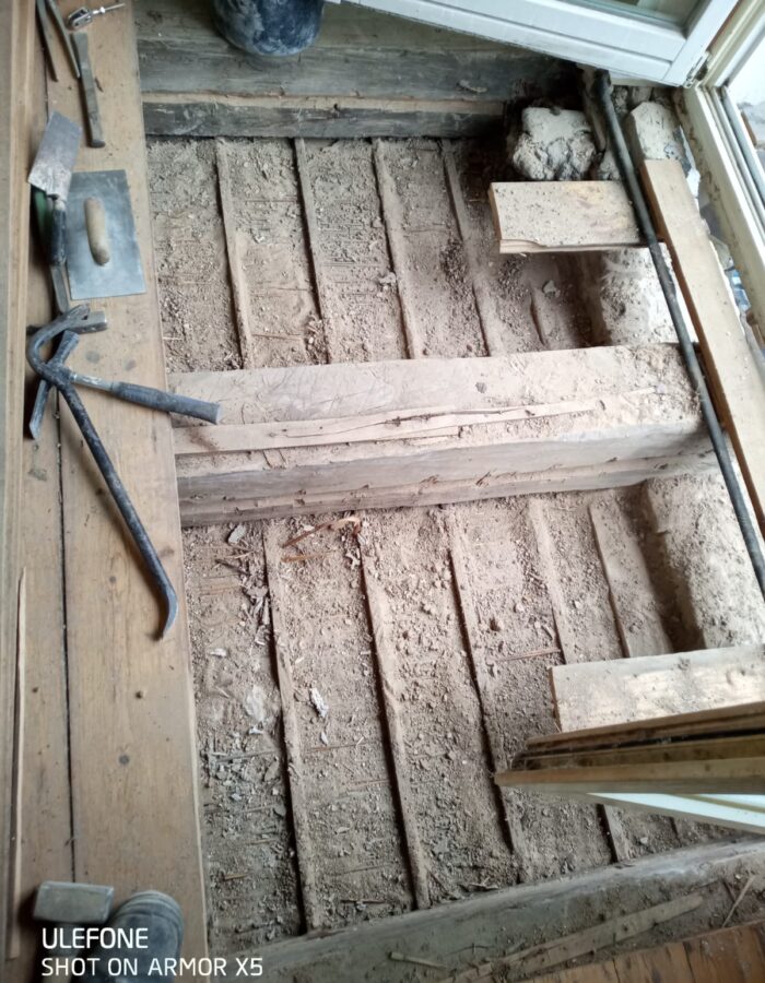 Abriss und Sanierung maroder Holzbalken,