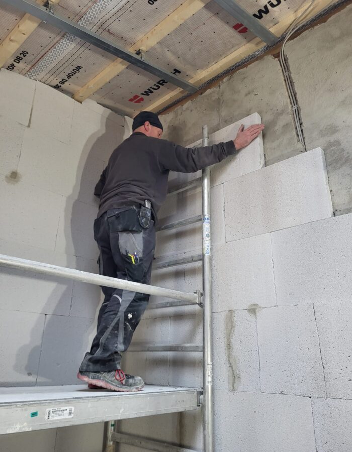 Einbau einer vollständigen Hausdämmung mit Kalziumsilikatplatten,